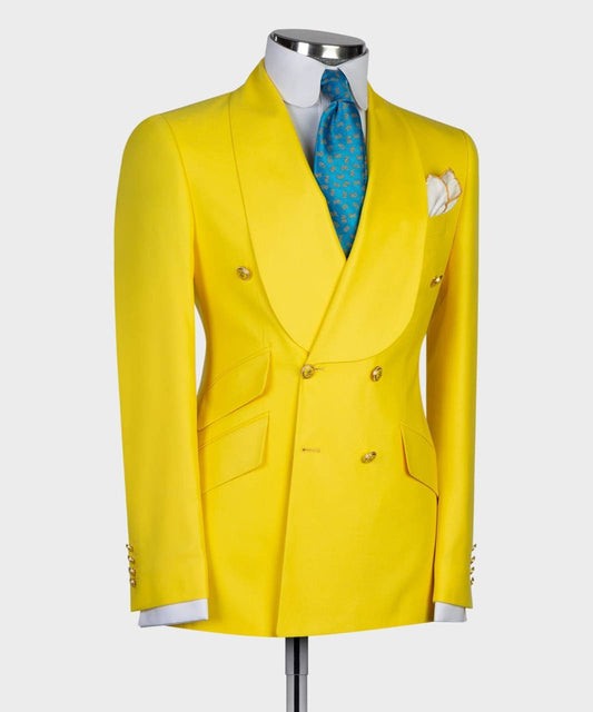 Men's 2 Piece Double Breasted Yellow Tuxedo Suit, Shawl Lapel