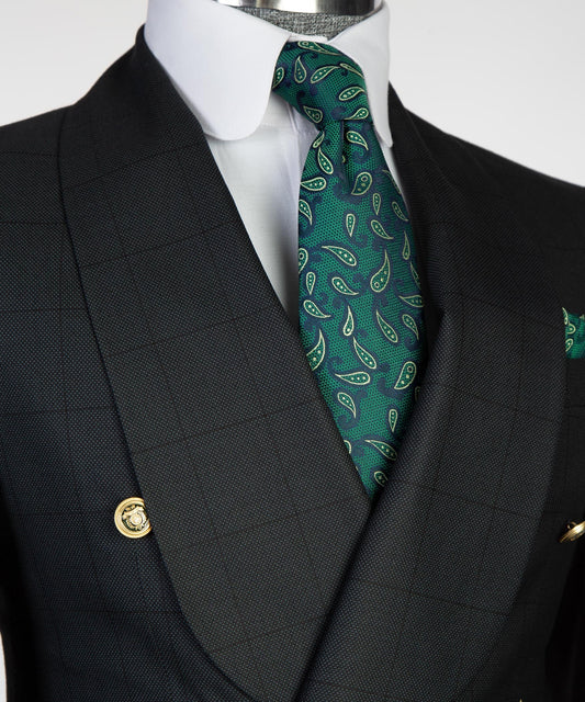Men's 2 Piece Double Breasted Black Tuxedo Suit Shawl Lapel