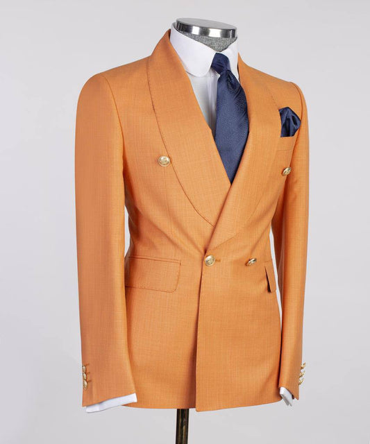 Men's Suit 2 Piece Double Breasted Yellow,Peak Lapel