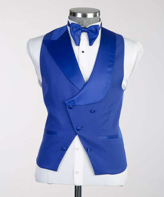 Men's Blue Tuxedo-Asymmetrical Satin Lapel