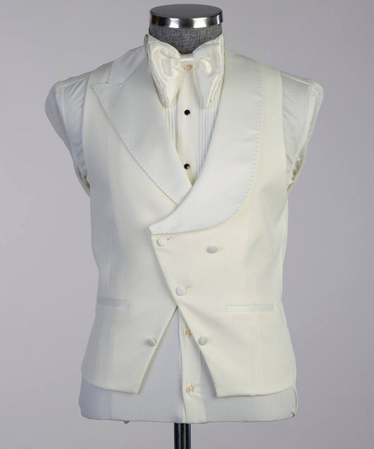 Men's Cream Tuxedo-Asymmetrical Satin Lapel