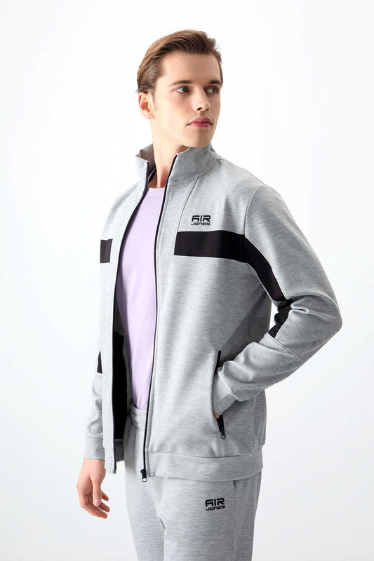 Men's-Grey-Black-Short Sleeve-Tracksuit Set