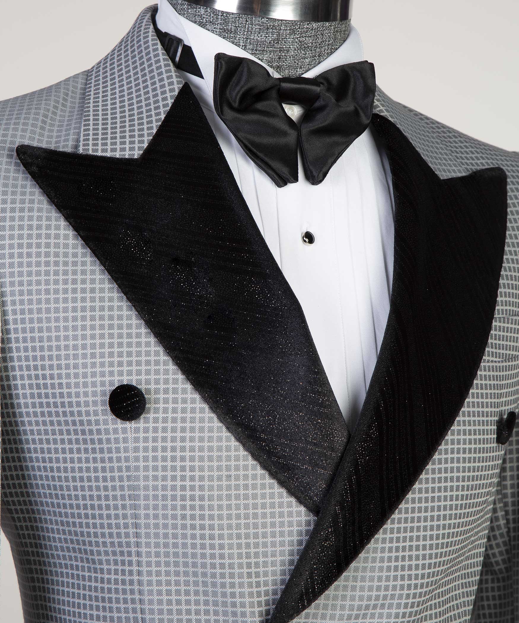 Men's 2 Piece Double Breasted Tuxedo Suit Grey/Black