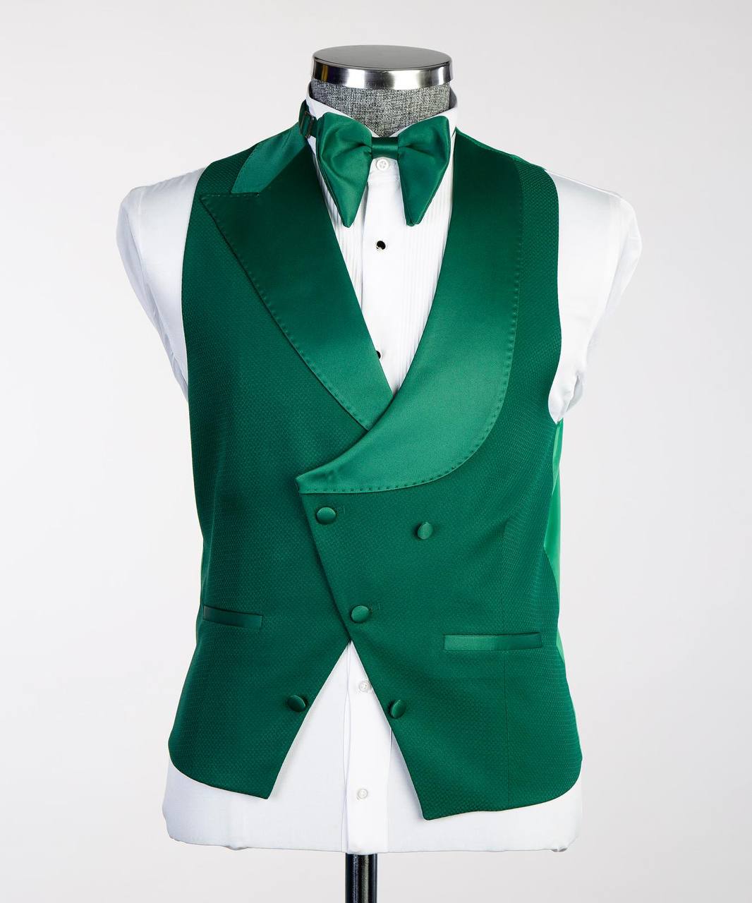 Green Tuxedo with Asymmetrical Satin Lapel - 3-Piece Set